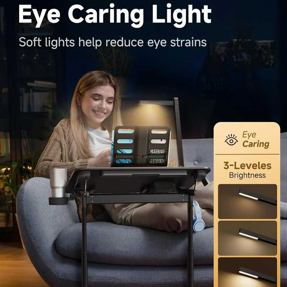 میز ایستاده لپ تاپ سایجی مدل F3 مجهز به چراغ LED داخلی است که نور ملایمی ایجاد میکند و برای کار یا مطالعه در محیطهای کمنور بسیار مناسب است. با این قابلیت، دیگر نیازی به روشن کردن چراغ بزرگ اتاق ندارید و میتوانید تمرکز بیشتری بر کار خود داشته باشید.