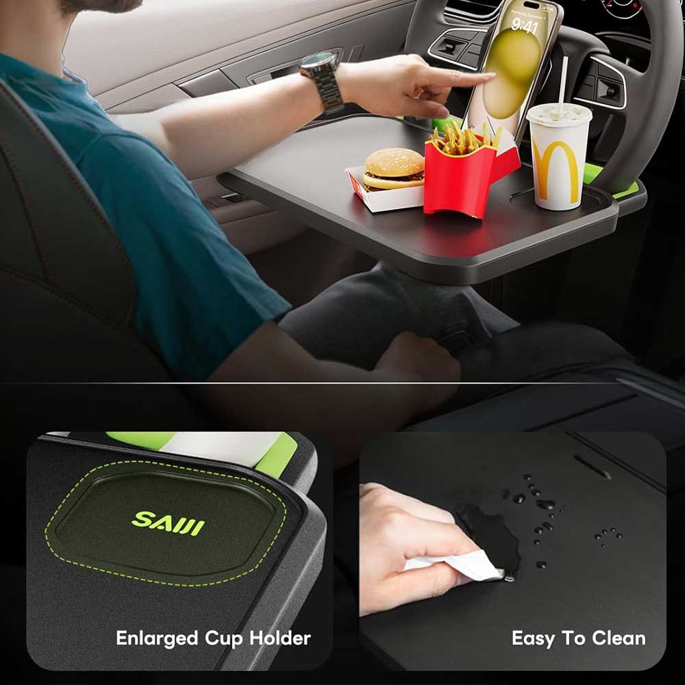 میز قابل حمل SAIJI که به فرمان خودرو وصل میشود، میتواند در دنیای پرشتاب امروز، بهویژه برای کسانی که زیاد در حال حرکت هستند کیفیت زندگی و کارشان را ارتقاء دهد.