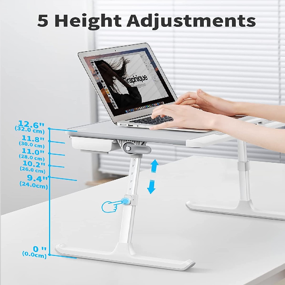 یکی از ویژگیهای برجسته میز K7-Mini، قابلیت تنظیم ارتفاع و زاویه صفحه است. ارتفاع میز از ۲۴ تا ۳۲ سانتیمتر قابل تنظیم است و میتوان آن را در چهار زاویه مختلف استفاده کرد. این قابلیت به کاربران اجازه میدهد تا در حالت نشسته روی صندلی، روی کاناپه یا حتی روی تخت، بهترین وضعیت ارگونومیک را برای کار با لپتاپ یا مطالعه داشته باشند.