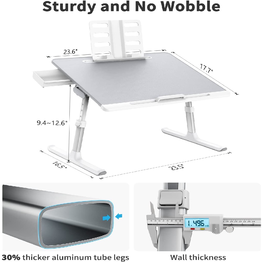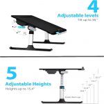 زاویه سطح قابل تنظیم: سطح میز از ۰° تا ۳۶° قابل تنظیم است. این قابلیت به شما اجازه میدهد لپتاپ، کتاب یا تبلت خود را در بهترین زاویه قرار دهید.