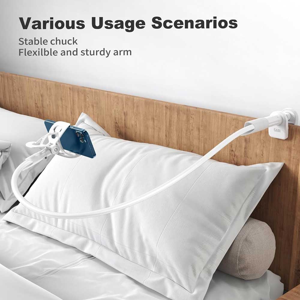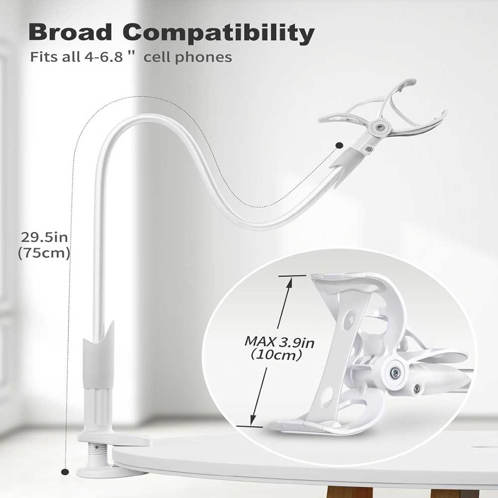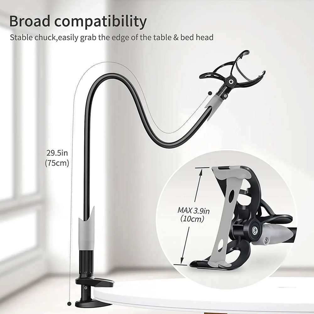 بازوی این پایه با طول ۸۵ سانتیمتر قابلیت چرخش ۳۶۰ درجه دارد. این ویژگی به شما امکان میدهد گوشی موبایل را در زاویه دلخواه تنظیم کنید، چه برای تماشای فیلم، چه برای تماس تصویری یا بازی. انعطافپذیری بالا باعث میشود بدون نیاز به تغییر مکان خود، بهترین زاویه دید را داشته باشید.