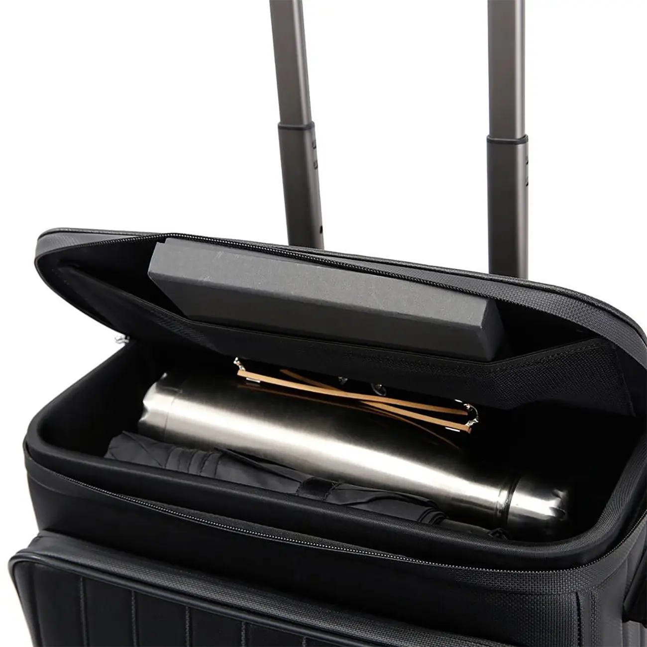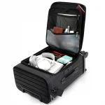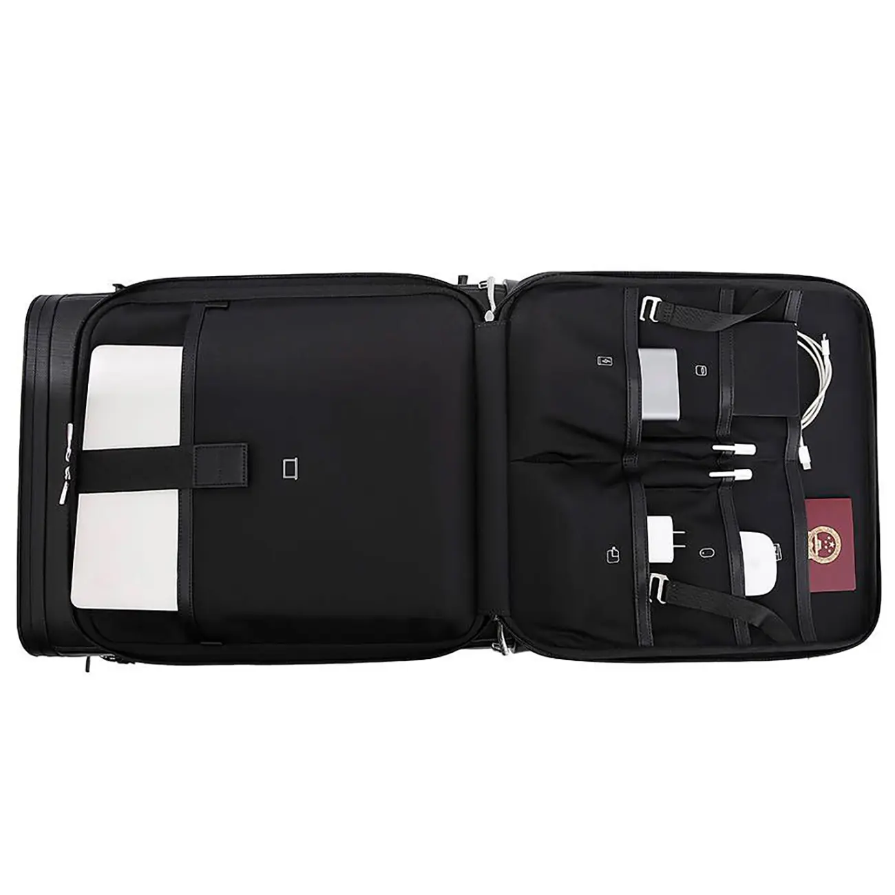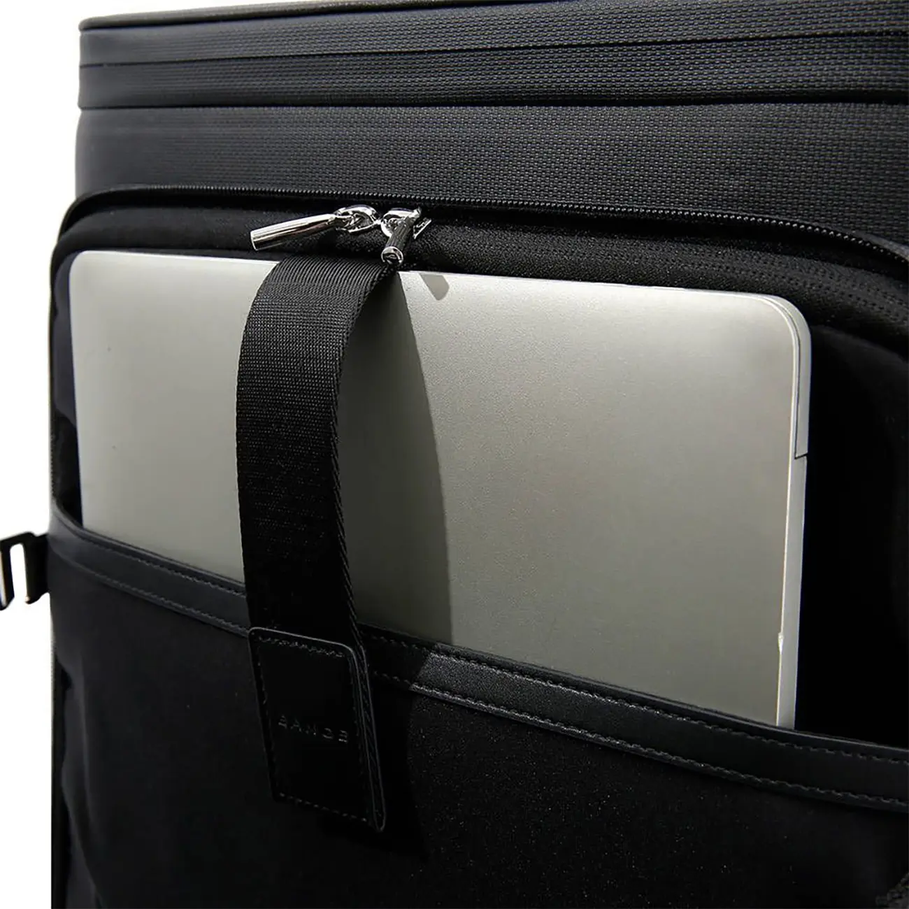 چمدان چرخ دار 20 اینچ بنج LY200 یک محفظه اصلی جادار دارد که با بندهای فشردهساز و جیبهای زیپی نظم وسایل را حفظ میکند. شما میتوانید لوازم شخصی، مدارک و لباسها را مرتب و آسان در دسترس نگه دارید.