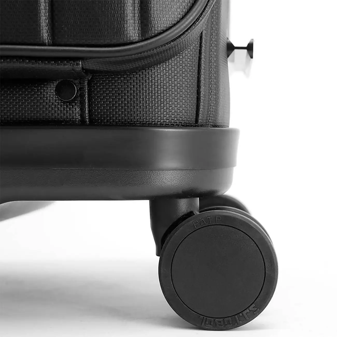 چمدان چهار چرخ اسپینری ۳۶۰ درجه دارد که حرکت آن روی هر سطحی روان و بیصدا است. این ویژگی باعث میشود بتوانید در فرودگاه یا خیابانها کنترل کامل روی چمدان داشته باشید.