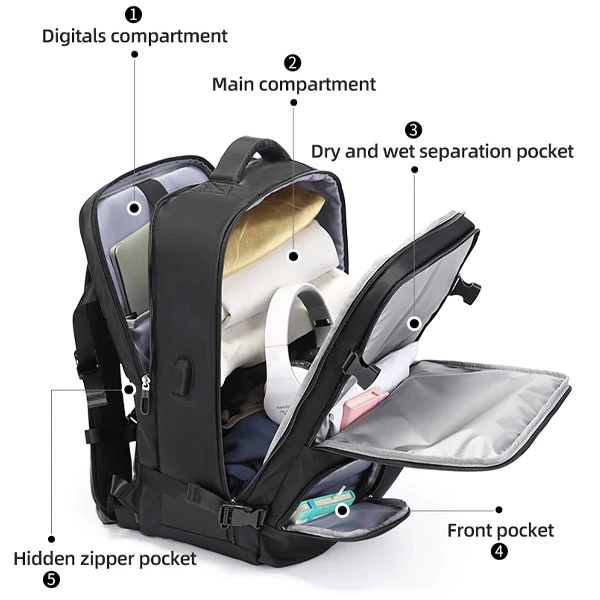 مجهز به جیبها و محفظههای متعدد برای وسایل شخصی و لوازم جانبی