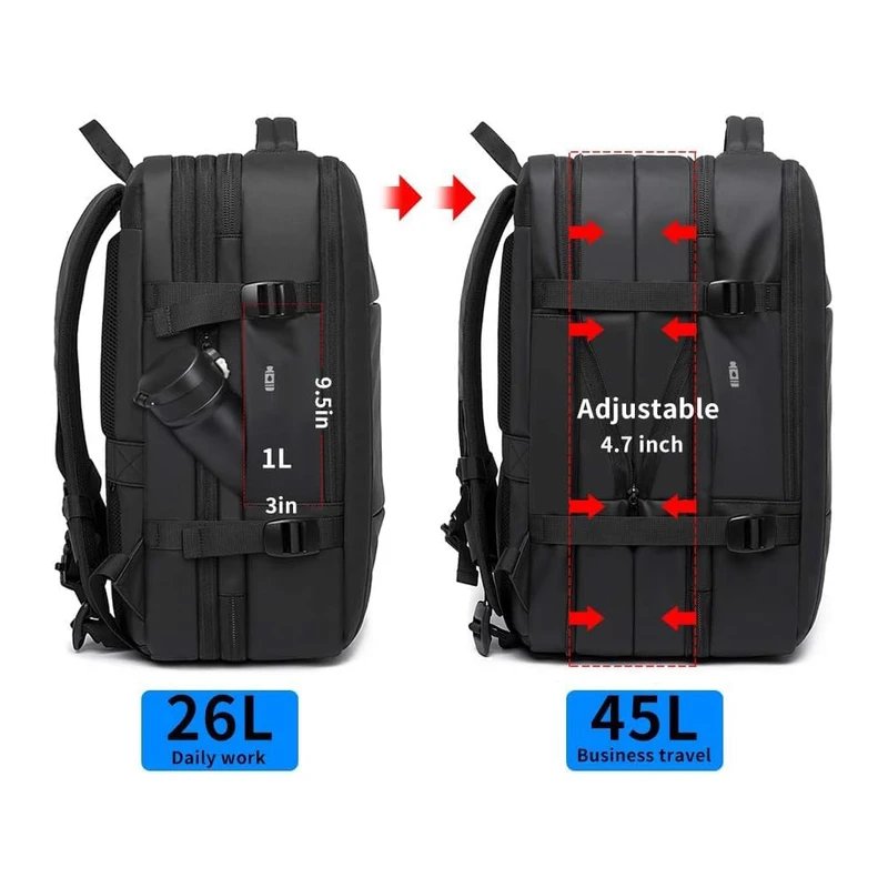 این کولهپشتی مجهز به پورت USB خارجی است که میتوان دستگاههای الکترونیکی مانند گوشی و تبلت را به راحتی شارژ کرد. با اتصال پاوربانک داخل کوله، میتوانید در هر زمان بدون نیاز به پیدا کردن پریز برق، وسایل خود را شارژ کنید. -