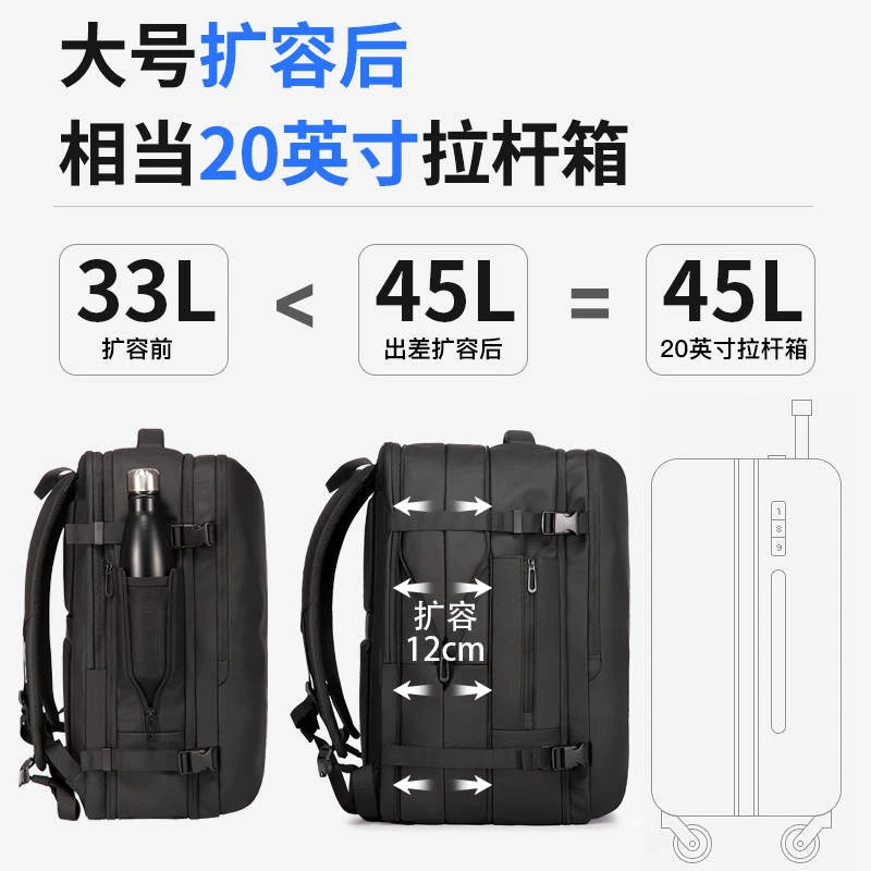 کوله پشتی بنج مدل BG-1909D دارای قابلیت افزایش حجم داخلی است. در حالت عادی حدود ۳۳ لیتر گنجایش دارد، اما با باز کردن زیپ مخصوص، حجم آن تا ۴۵ لیتر افزایش مییابد. این ویژگی برای سفرهای کاری چندروزه یا استفاده دانشجویی بسیار کاربردی است. میتوانید بهراحتی لباس، کفش یا لوازم جانبی بیشتری در آن قرار دهید.