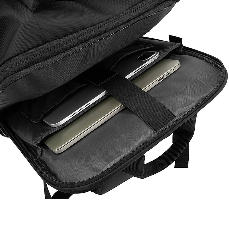 در داخل کوله، چندین بخش جداگانه وجود دارد تا وسایل شما همیشه منظم بمانند. محفظهی مخصوص لپتاپ تا اندازهی ۱۷ اینچ با پد محافظ، ایمنی دستگاه را تضمین میکند. فضای اصلی برای کتاب، پوشه یا لباس مناسب است. جیبهای کوچکتر نیز برای لوازم شخصی، کابل، پاوربانک یا دفترچه طراحی شدهاند. دسترسی سریع به وسایل یکی از مزیتهای مهم این مدل است.