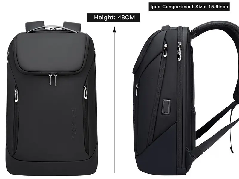 ابعاد مناسب: 31 × 48 × 16 سانتیمتر با ظرفیت 20 تا 25 لیتر، فضای کافی برای لپتاپ، کتاب و وسایل روزمره فراهم میکند.