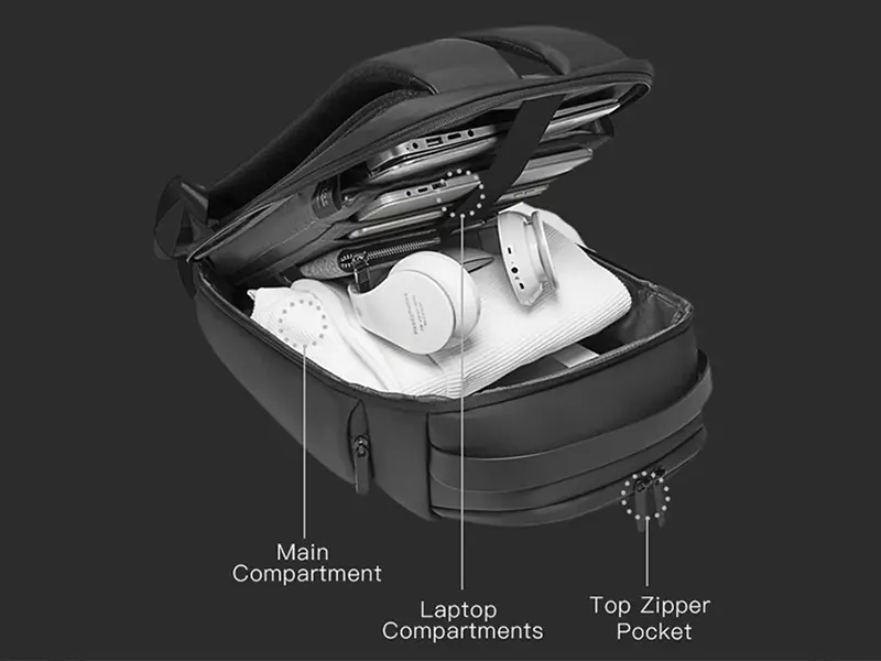 این کولهپشتی دارای چندین بخش مجزا و جیبهای هوشمند است که نظم وسایل شما را تضمین میکند. میتوانید به راحتی وسایل کوچک مانند هندزفری، شارژر و مدارک را دستهبندی کنید. -