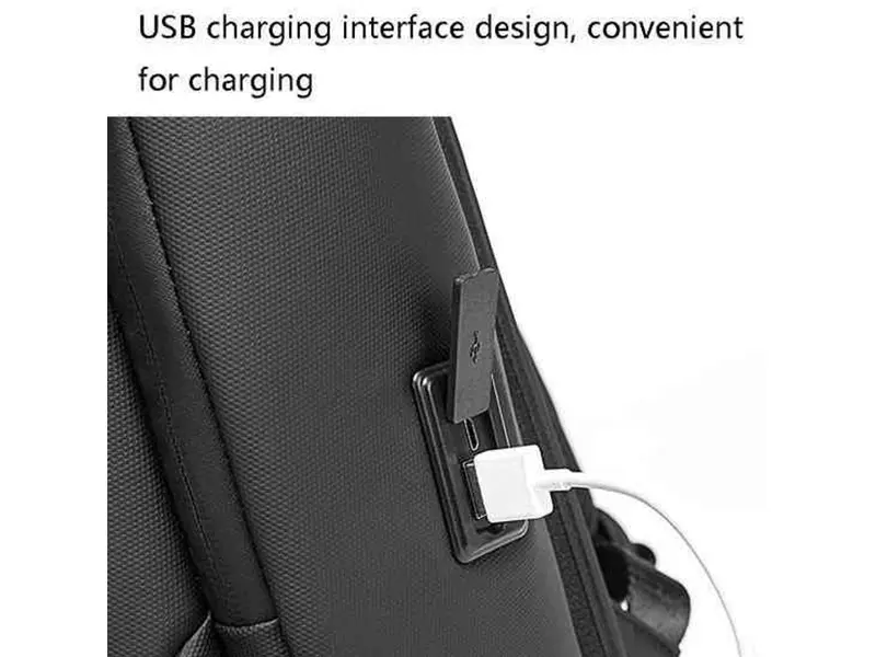 BANGE BG-7277 مجهز به پورت USB خارجی است تا بتوانید دستگاههای خود مانند گوشی و تبلت را در حین حرکت شارژ کنید. کافی است پاوربانک را در محفظه داخلی قرار دهید و کابل را به پورت USB متصل کنید. -