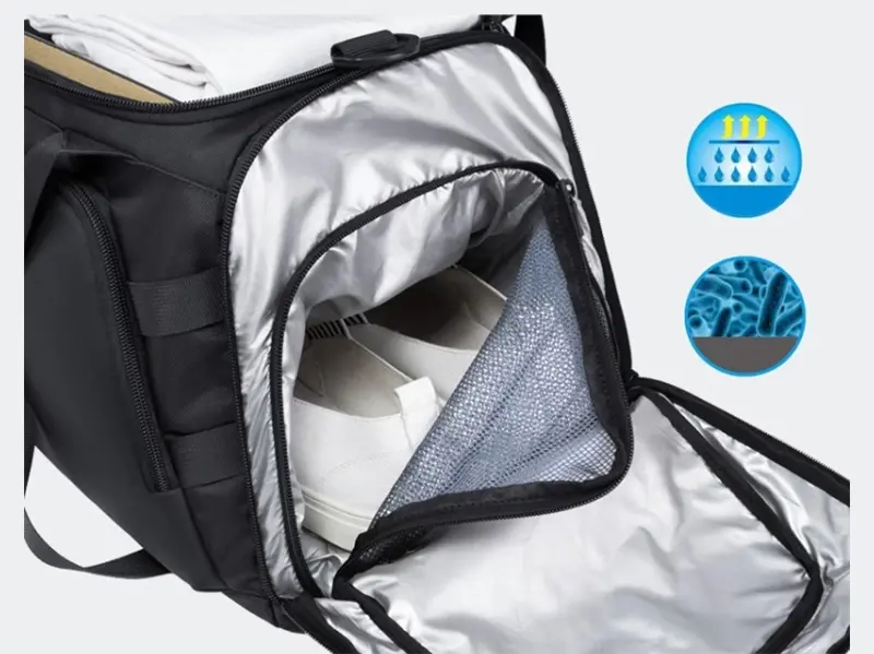 فضای داخلی کیف، امکان حمل لباس ورزشی، کفش، بطری آب، حوله و لوازم شخصی را فراهم میکند. کاربر میتواند وسایل مورد نیاز خود را بدون محدودیت در آن قرار دهد و بهراحتی به هر کدام دسترسی داشته باشد.